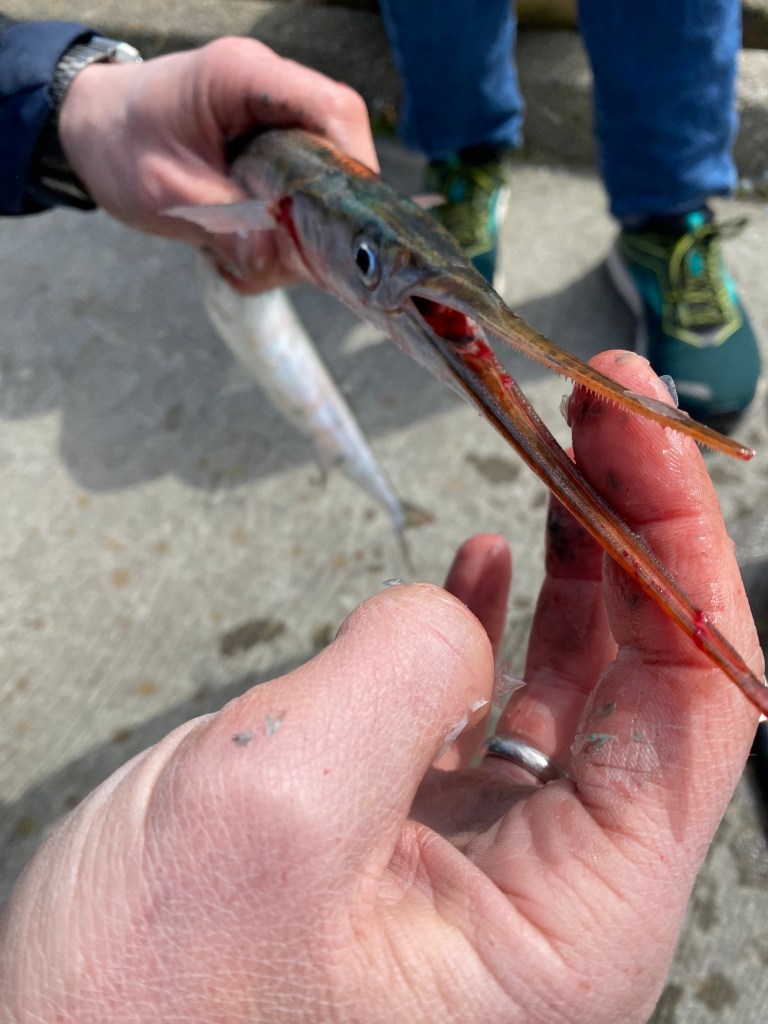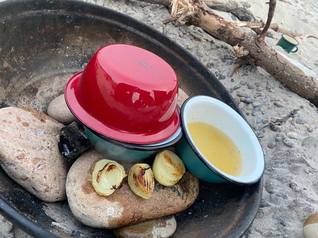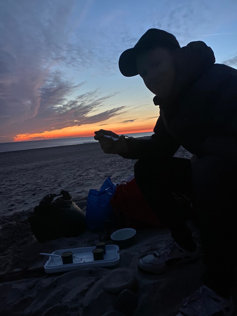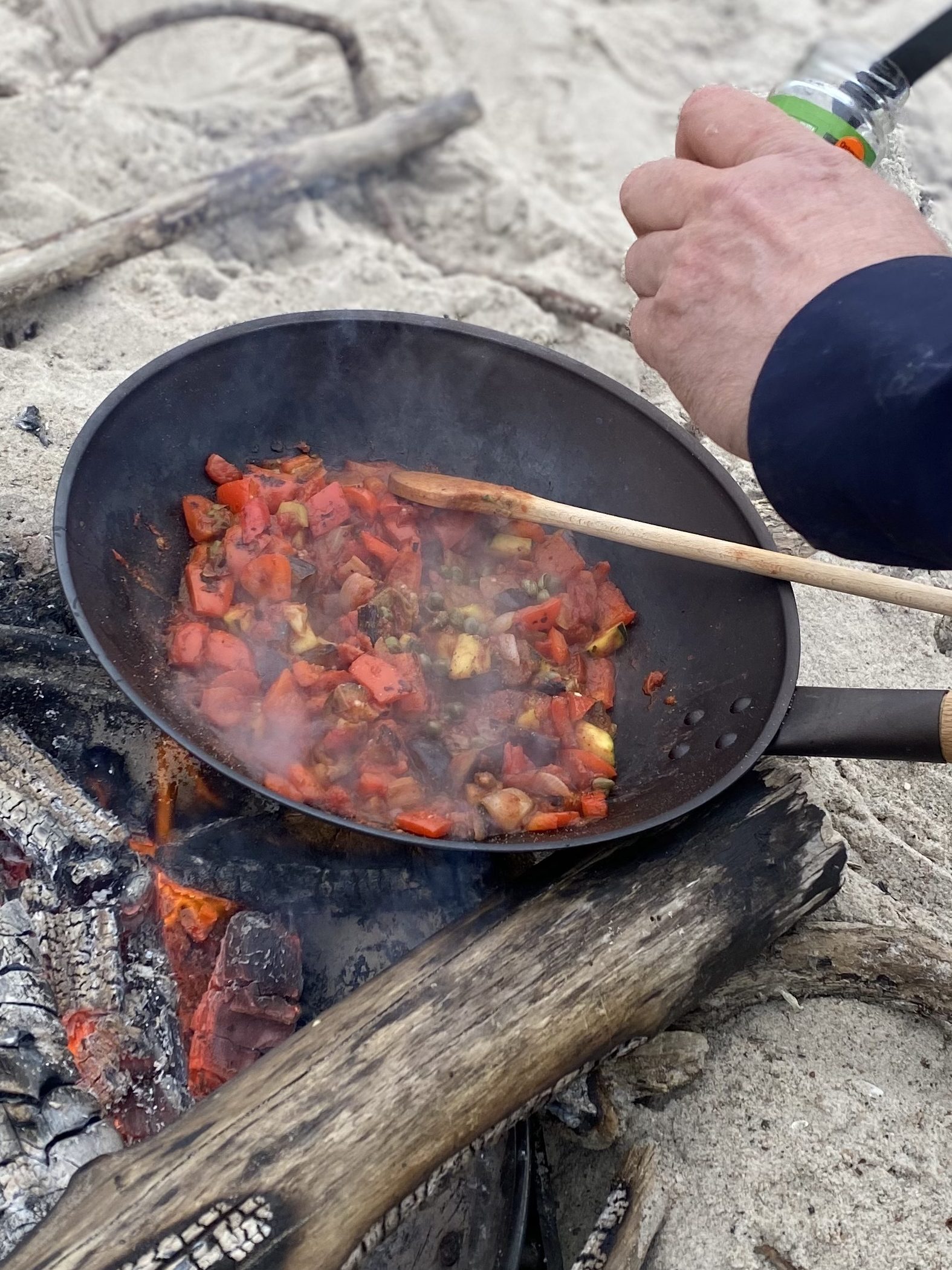 Wir verbringen dreieinhalb Tage gemeinsam beim Angeln, Feuer machen und leckerem Essen am Strand. Wir buddeln Lachs ein und aus, fangen und filetieren bis spät in die Nacht Hornhechte, erwischen genau einen Hering und eine Flunder. Wir verbringen viele Stunden draußen im stürmischen Wind, stehen mit der Wathose in der glatten See und räuchern am Feuer ganz ungeplant unsere Jacken.